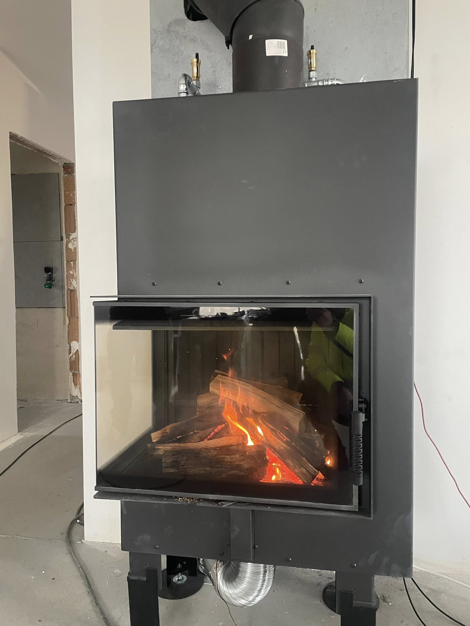 System został uzupełniony o kominek z płaszczem wodnym 🔥💧, który dostarczył Nyski Salon Kominków Kratki – nasz sprawdzony i solidny partner 🤝. To rozwiązanie, które łączy klimat żywego ognia z realnym wsparciem instalacji centralnego ogrzewania.